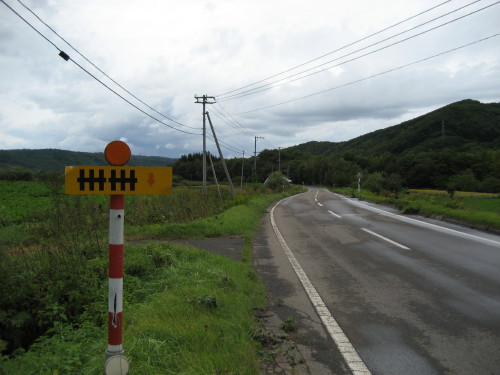 四国出身で東京暮らしの私に、その発想はまったくなかった。除雪する際に雪に隠れて見えない障害物の存在を知らせるための標識なのだそうだ。というか、防護柵なんてあったかなあ?少なくとも冒頭に掲載した写真には写っていない。かつてはあったが撤去されたのか、あるいは、道路の脇にある溝の存在を知らせるために標識を代替しているのかもしれない。